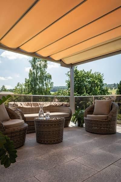 • Faltdach für Ihre Sicherheit: Das Markisentuch ist nicht nur wasserdicht, sondern auch feuerfest. Sie geniessen mit Sicherheit mehr unbesorgte Gartenstunden.
