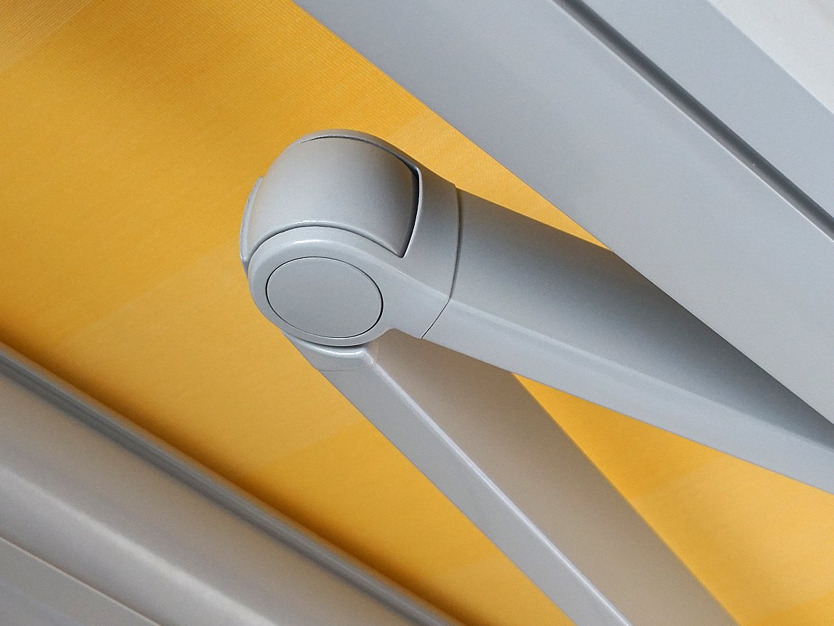 - Kassettenmarkise aus stranggepresstem Aluminium, Walzenrohr ∅ 78 mm, Alu-Saumrohr, Gelenkarme, Konsolen, Stoff aus Sonnentuch-Kollektionen
