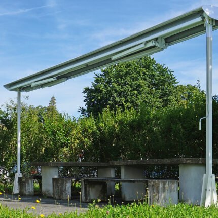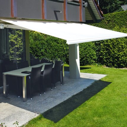 - Comfort Duo: Sitzplatzmarkise mit Tragrohr für grosse Flächen. Diese Doppelmarkise schafft grosszügig beschattete Bereiche und eignet sich perfekt für Gastronomiebereiche oder geräumige Terrassen.