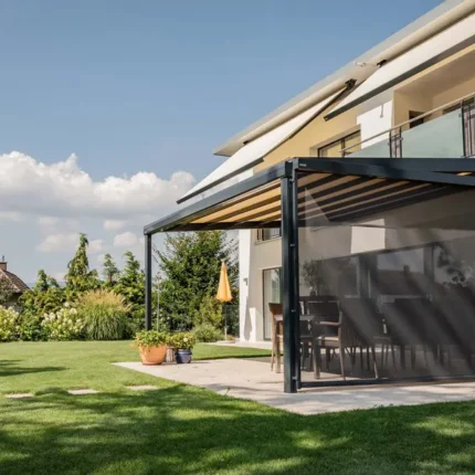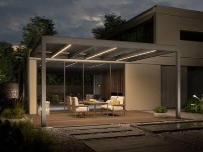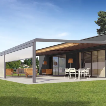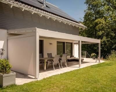 - NYON: Robuste Glasdach-Pergola kombiniert Stabilität mit Eleganz. Die stärkere Rahmenkonstruktion trägt auch große Glaselemente sicher und eignet sich besonders für exponierte Standorte mit höheren Windlasten.