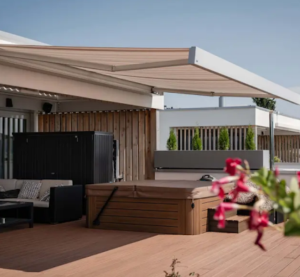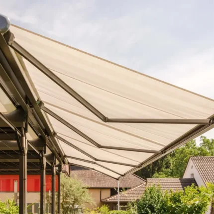 Stobag schafft harmonische Verbindungen zwischen Gebäuden und ihrer Umgebung. Von eleganten Kassettenmarkisen über funktionale Senkrechtmarkisen bis hin zu architektonisch anspruchsvollen Pergolen bietet Stobag für jedes Projekt die passende Lösung.